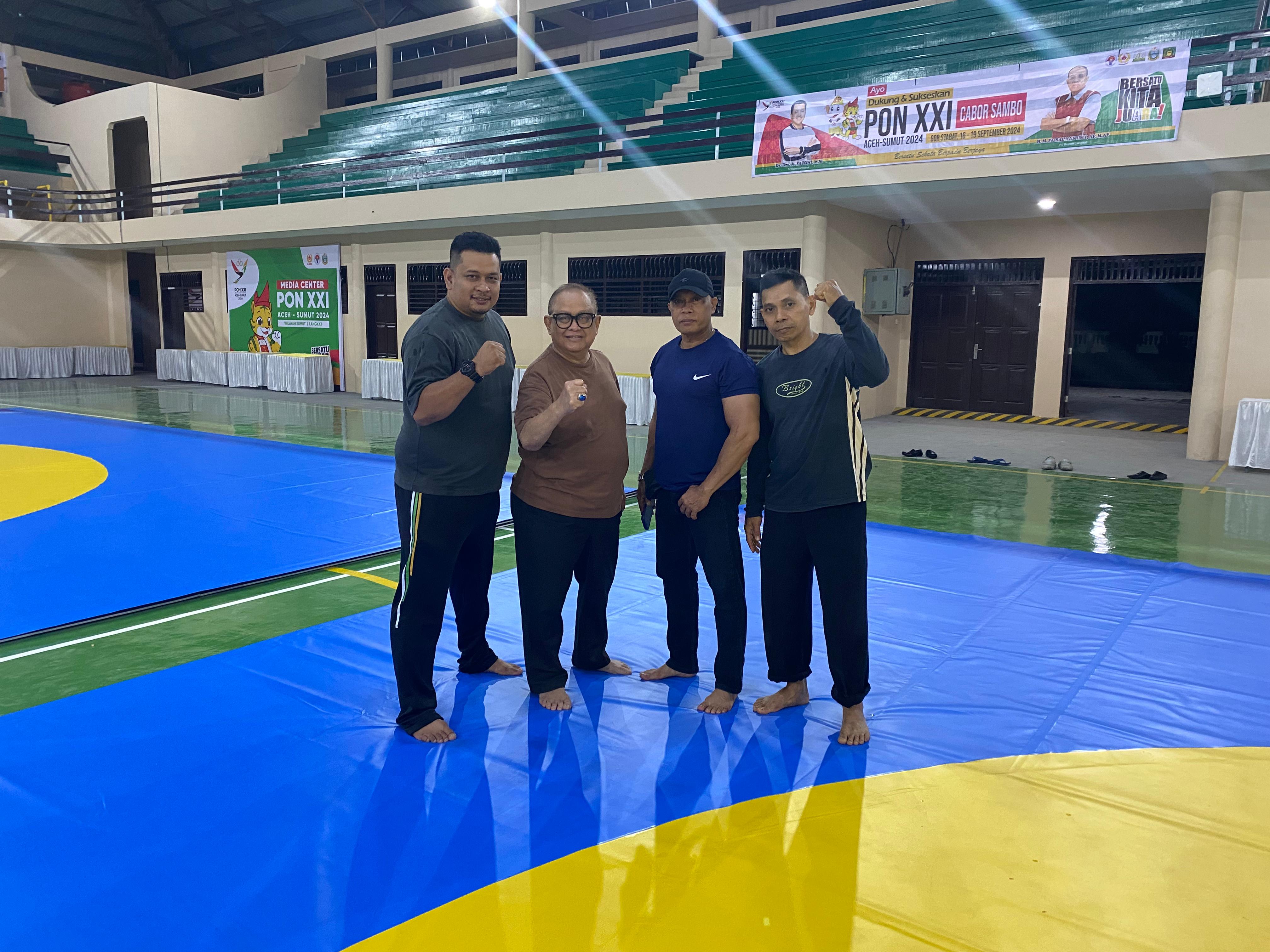 Atlit Sambo PON Riau meninjau Arena Pertandingan.