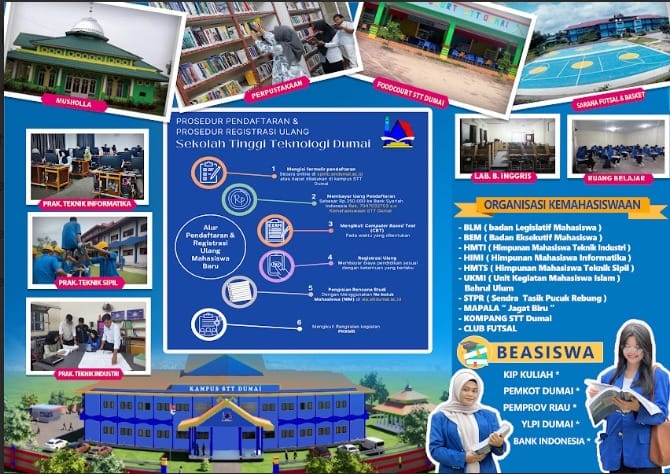 Sekolah Tinggi Teknologi Dumai (STT Dumai) kembali membuka kesempatan bagi calon mahasiswa untuk bergabung dalam komunitas akademik yang inovatif dan berprestasi. Dengan berbagai program studi unggulan yang telah terakreditasi dengan predikat "Baik Sekali," STT Dumai siap mencetak generasi unggul di bidang teknologi untuk Tahun Akademik 2025/2026.