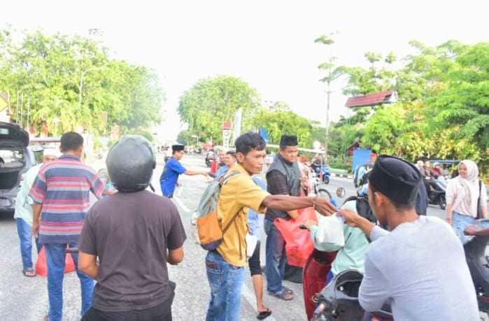 BENGKALIS– Persatuan Wartawan Indonesia (PWI) Kabupaten Bengkalis kembali menunjukkan kepedulian sosialnya dengan membagikan ratusan paket takjil kepada masyarakat yang melintas di Jalan Sudirman, tidak jauh dari Gedung PWI Bengkalis, Senin (17/3/25).