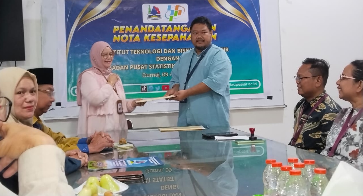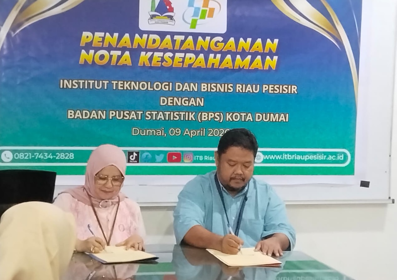 Dumai, 09/04/2026. – Badan Pusat Statistik (BPS) Kota Dumai resmi melakukan penandatanganan Memorandum of Understanding (MoU) dengan Institut Teknologi dan Bisnis Riau Pesisir (ITB Riau Pesisir) sebagai langkah strategis memperkuat sinergi antara lembaga pemerintah dan perguruan tinggi dalam bidang data, riset, serta pengembangan sumber daya manusia. Kegiatan tersebut dilaksanakan di Kampus ITB Riau Pesisir dengan suasana khidmat dan penuh semangat kolaborasi.