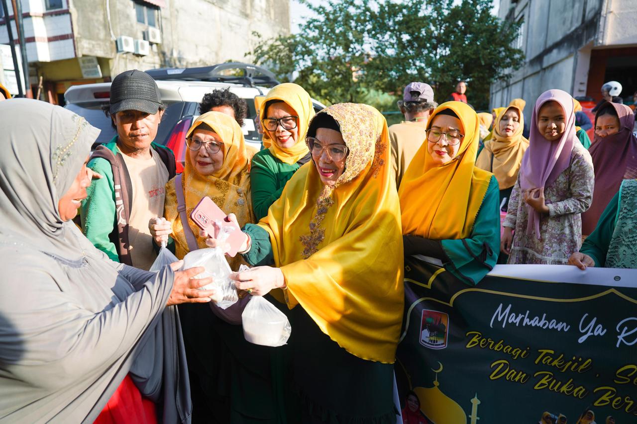 Ikatan Wanita Minang Riau (IWMR) Kota Dumai melaksanakan pembagian takjil di Jalan Sultan Syarif Kasim kepada para pengendara dan masyarakat sekitar. Total 400 porsi takjil diberikan secara langsung oleh para pengurus dan anggota IWMR Kota Dumai, Senin (24/3/2025).