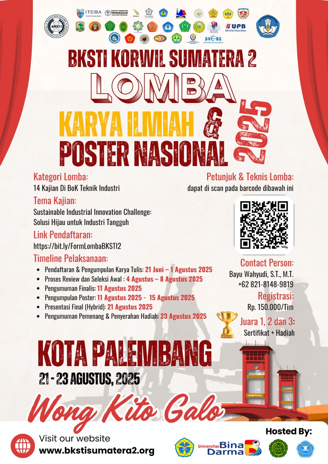 Dumai, 23-08-2025. Institut Teknologi dan Bisnis Riau Pesisir (ITB RIAU PESISIR) kembali mencatatkan prestasi membanggakan di tingkat nasional. Pada ajang Lomba Karya Ilmiah & Poster Nasional 2025 yang diselenggarakan oleh BKSTI Korwil Sumatera 2 di Kota Palembang, tanggal 21–23 Agustus 2025, mahasiswa Program Studi Teknik Industri berhasil meraih juara dalam beberapa bidang kajian (BoK) Teknik Industri.
