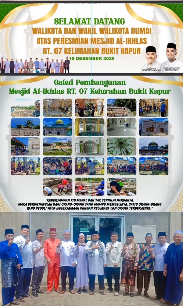 Sementara itu, Ketua RT 07 Kelurahan Bukit Kapur, Herman Saputra, melalui media ini menyampaikan ucapan terima kasih kepada seluruh warga dan jamaah atas partisipasi serta dukungan yang diberikan, baik secara materi maupun nonmateri, hingga Masjid Al-Ikhlas dapat terwujud dan diresmikan.