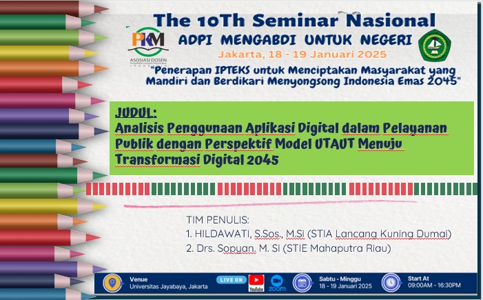 Jakarta - Tanggal 18 dan 19 Januari 2025, diselenggarakan Seminar Nasional Mengabdi untuk negeri secara daring yang ditaja oleh ADPI Universitas Jayabaya Jakarta.