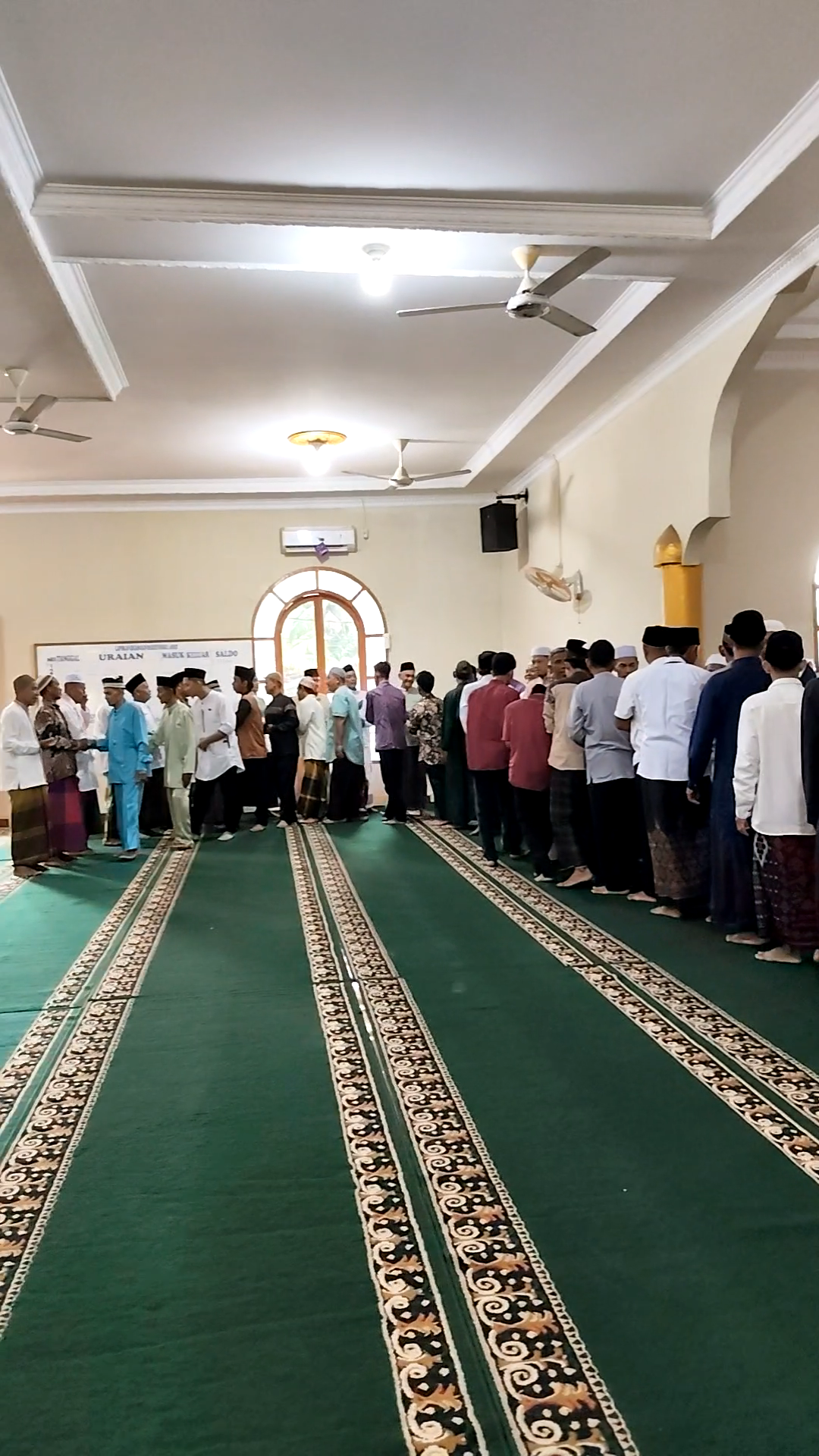 Usai khutbah dan setelah khatib turun dari mimbar, para jamaah tampak saling bersalaman dan bermaaf-maafan. Momen tersebut berlangsung penuh kehangatan, diiringi senyum dan rasa haru yang mempererat tali persaudaraan antar sesama.