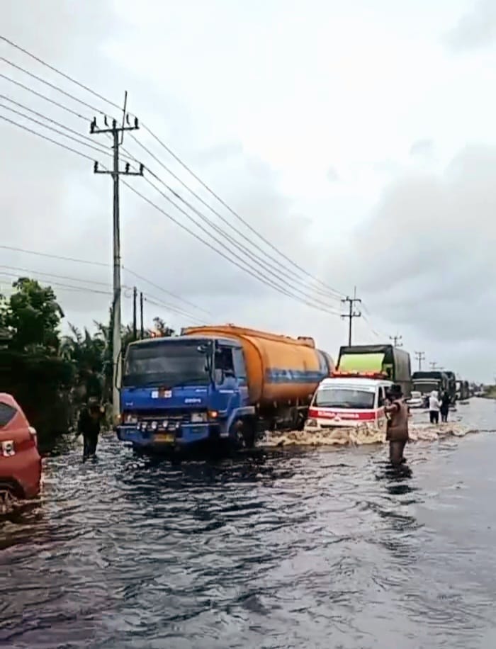 Beberapa hari terakhir ini, hampir setiap hari hujan di beberapa daerah di Provinsi Riau dan termasuk di Kabupaten Pelalawan, membawa akibat ada beberapa daerah yang mengalami banjir dan termasuk dijalan lintas di Kabupaten Pelalawan.