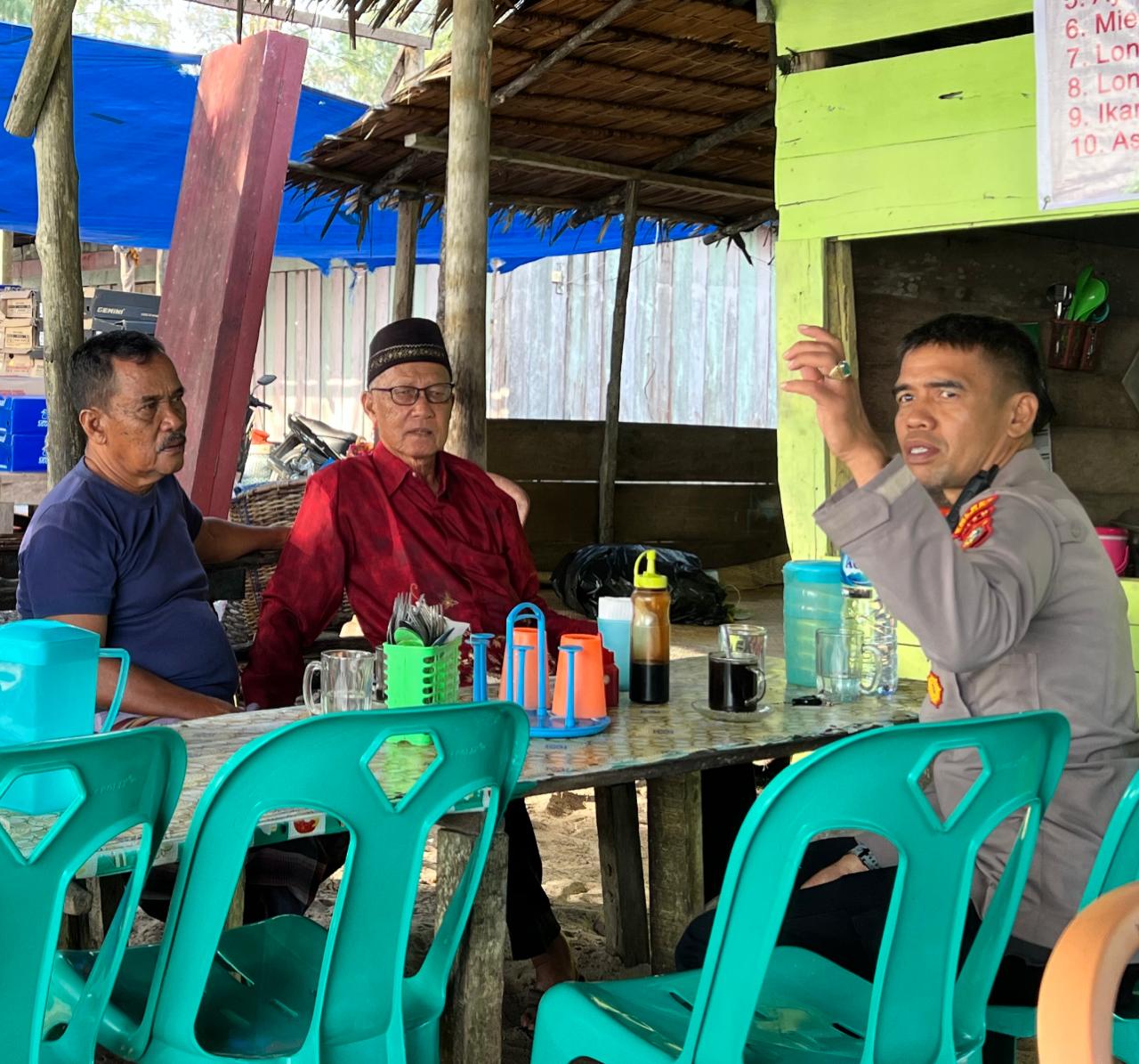 Dalam suasana santai bersama masyarakat sambil menikmati secangkir kopi hangat dalam suasana kekeluargaan Personil Polsek Rupat Ps. Kanit Binmas Aiptu Ahmad Fauzi berdialog sambil memberikan himbau kepada masyarakat untuk senantiasa menciptakan suasana kondusif di tengah-tengah kehidupan masyarakat.