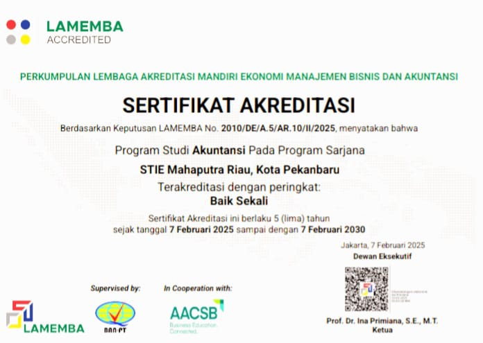 Capaian ini semakin memperkuat kualitas pendidikan di STIE Mahaputra Riau dan menjadi bukti komitmen institusi dalam memberikan pendidikan terbaik bagi mahasiswa. Dengan akreditasi ini, lulusan Program Studi Akuntansi STIE Mahaputra Riau semakin diakui dalam dunia kerja dan memiliki daya saing tinggi di bidang akuntansi serta keuangan.