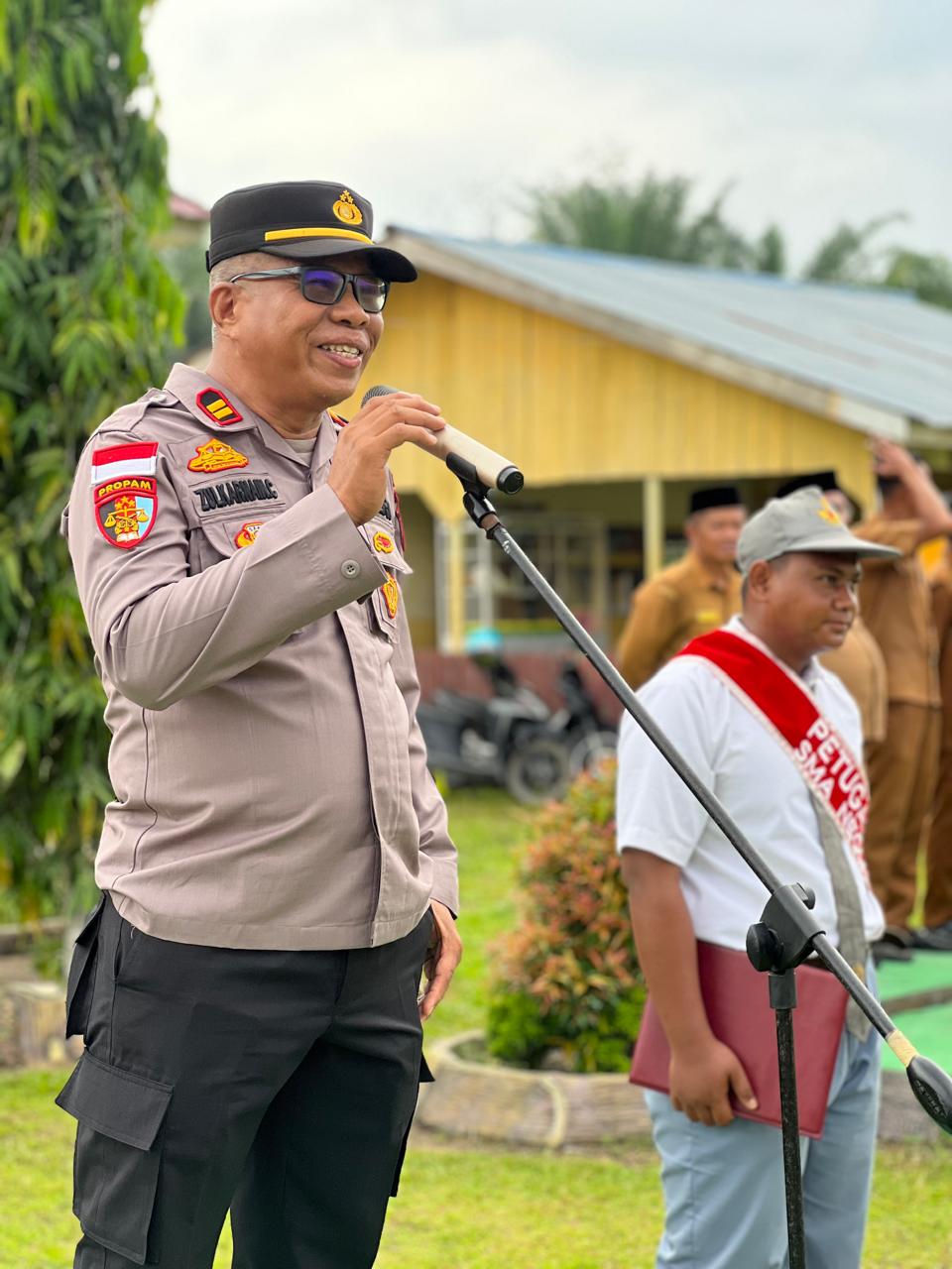 Dalam rangka Operasi Mantap Praja Lancang Kuning 2024 berbagai kegiatan Harkamtibmas Persiapan Pilkada serentak tahun 2024 di Wilkum Polsek Rupat, Kapolsek Rupat Iptu Zulkarnain Chan, S.E melaksanakan Kegiatan Cooling System melalui Momen menjadi Pembina Upacara Bendera Senin di Sekolah SMA N 1 Rupat yang dilaksanakan pukul 07.30 wib (2/09/2024).