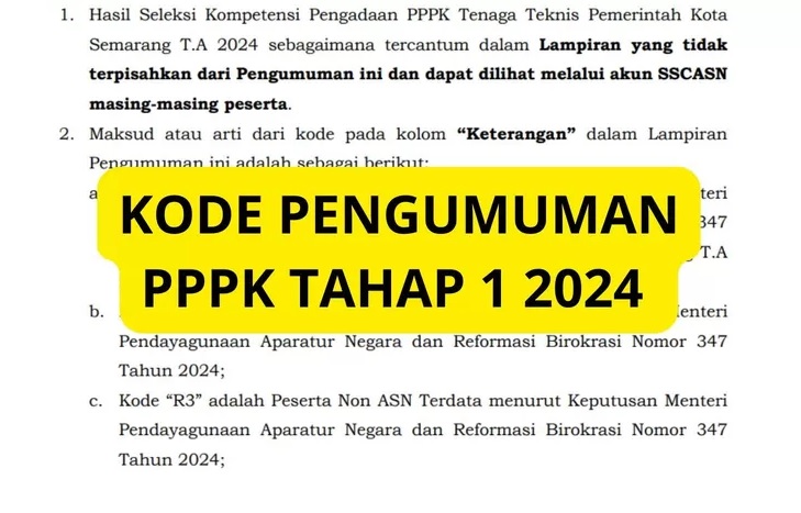 Pengumuman hasil seleksi PPPK 2024 Tahap 1 telah disiarkan sejak 24 Desember. Dalam dokumen pengumuman yang diunggah oleh instansi, para peserta seleksi akan menjumpai kode tertentu seperti; P, PR, L, TL, TMS, TH, dan A. Lalu, apa arti kode tersebut?