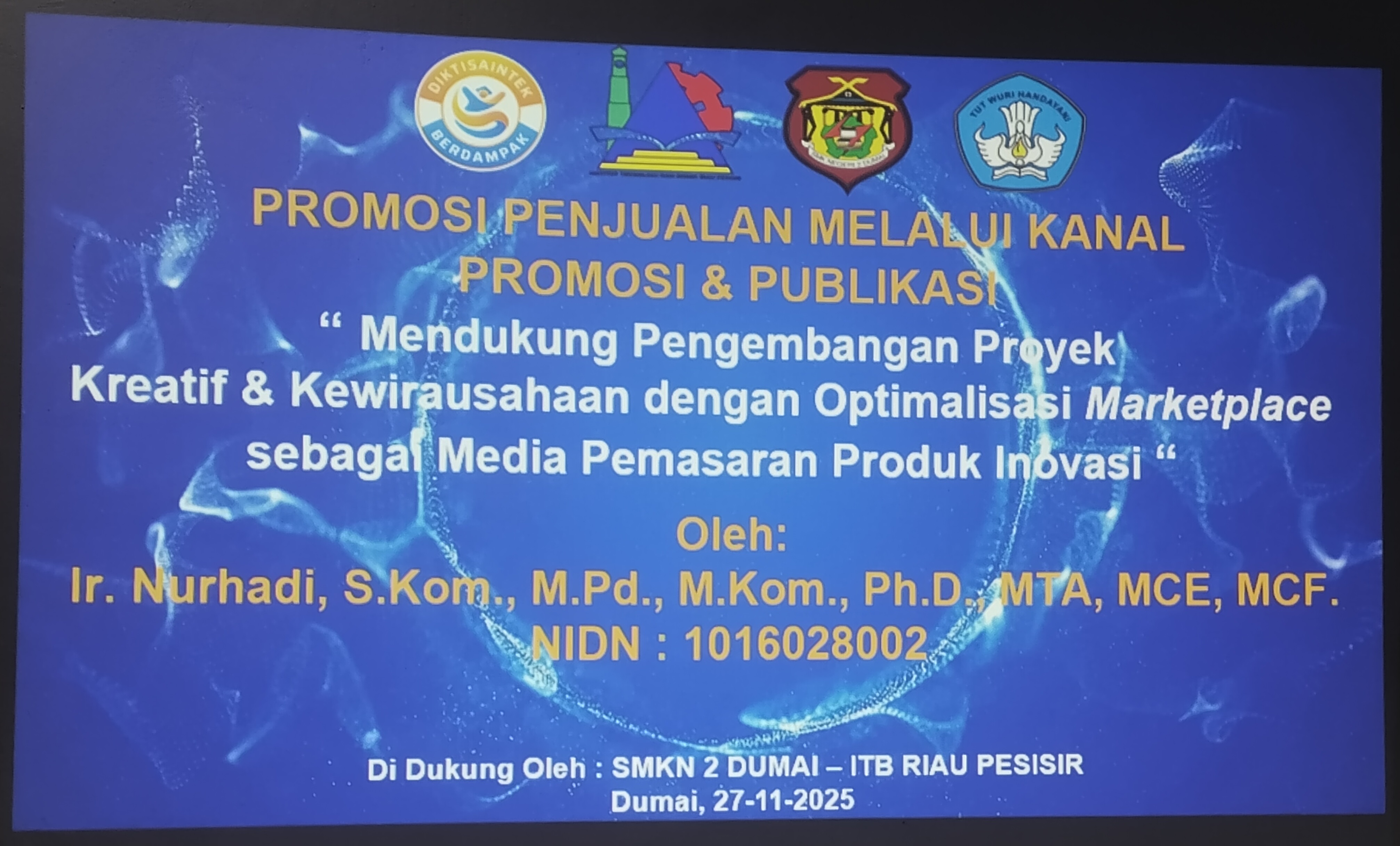 Dumai, 27 November 2025 — SMK Negeri 2 Dumai sukses menyelenggarakan Workshop “Promosi Penjualan Melalui Kanal Promosi & Publikasi – Mendukung Pengembangan Proyek Kreatif & Kewirausahaan dengan Optimalisasi Marketplace sebagai Media Pemasaran Produk Inovasi”. Kegiatan ini merupakan bagian dari program penguatan kewirausahaan siswa yang didukung oleh Hibah Riset Direktorat Jenderal Sekolah Menengah Kejuruan (Dirjen SMK).