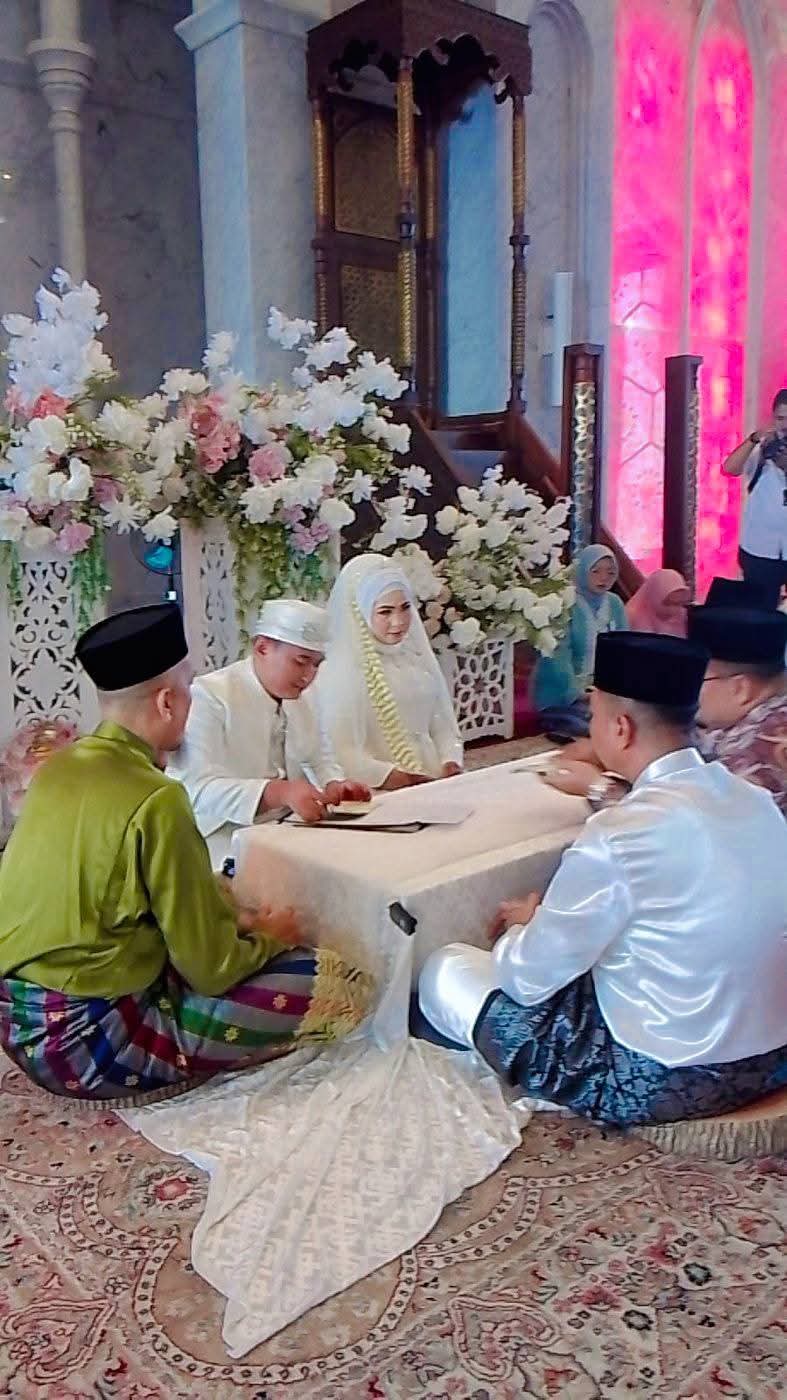 Suasana akad nikah semakin syahdu saat doa dipanjatkan agar Allah SWT senantiasa melimpahkan rahmat, keberkahan, dan perlindungan-Nya kepada kedua mempelai, serta menjadikan mereka keluarga yang sakinah, mawaddah, dan warahmah, dikaruniai keturunan yang saleh dan salehah.