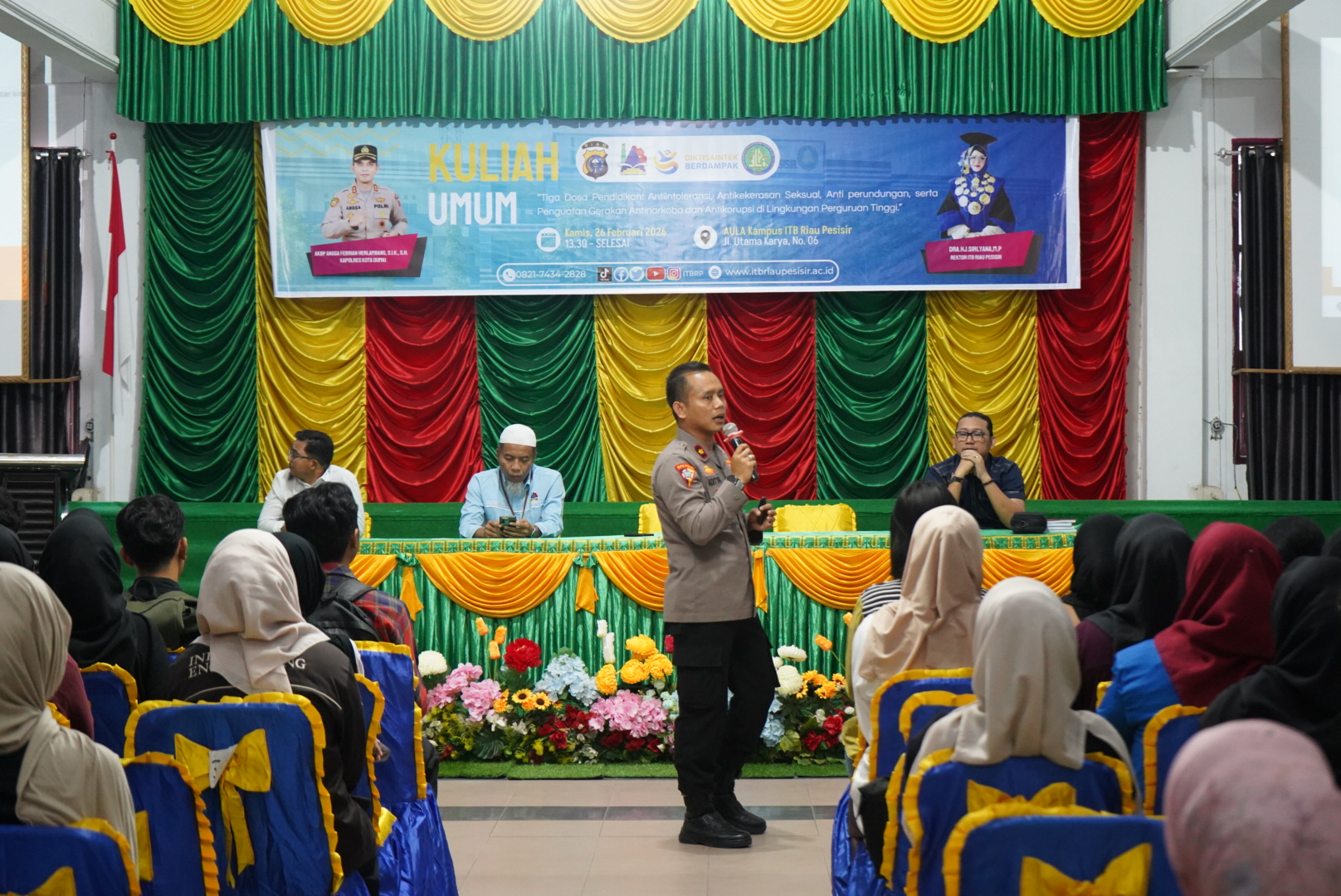 Rektor ITB Riau Pesisir, Dra. Hj. Sirlyana, M.P., diwakili oleh Wakil Rektor III Bidang Kerja Sama dan Kemahasiswaan, Dr. Ir. H. Yusrizal, M.M., IPM. Dalam sambutannya, ia menekankan pentingnya kolaborasi antara institusi pendidikan dan aparat penegak hukum dalam menciptakan ekosistem pendidikan tinggi yang aman dan inklusif.
