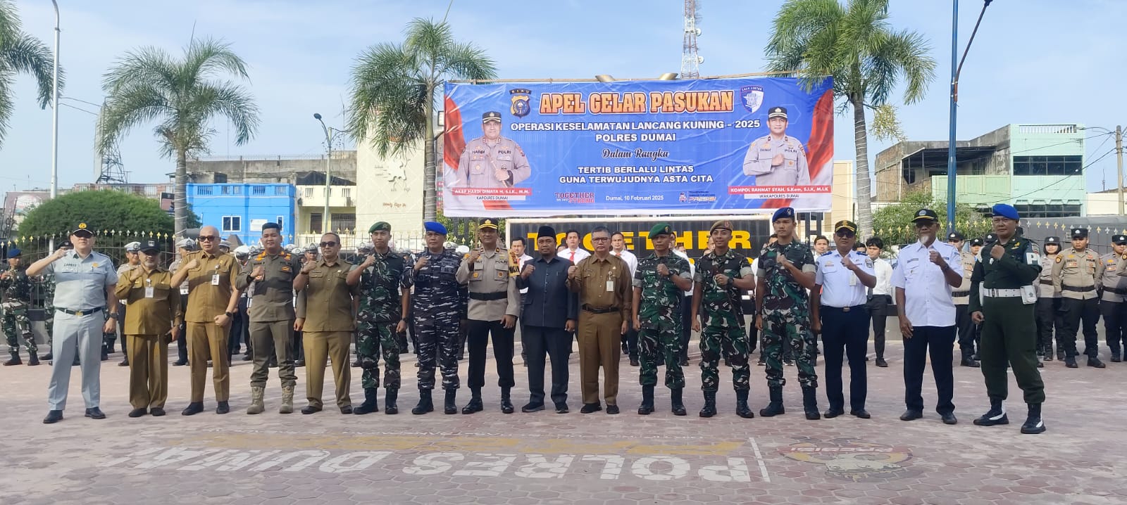 Dumai, 10 Februari 2025 – Kepolisian Resor (Polres) Dumai menggelar Apel Gelar Pasukan dalam rangka Operasi Keselamatan Lancang Kuning 2025 di Lapangan Polres Dumai. Acara ini dihadiri oleh berbagai unsur, termasuk TNI, Satpol PP, Dinas Perhubungan, serta jajaran Forkopimda Kota Dumai.