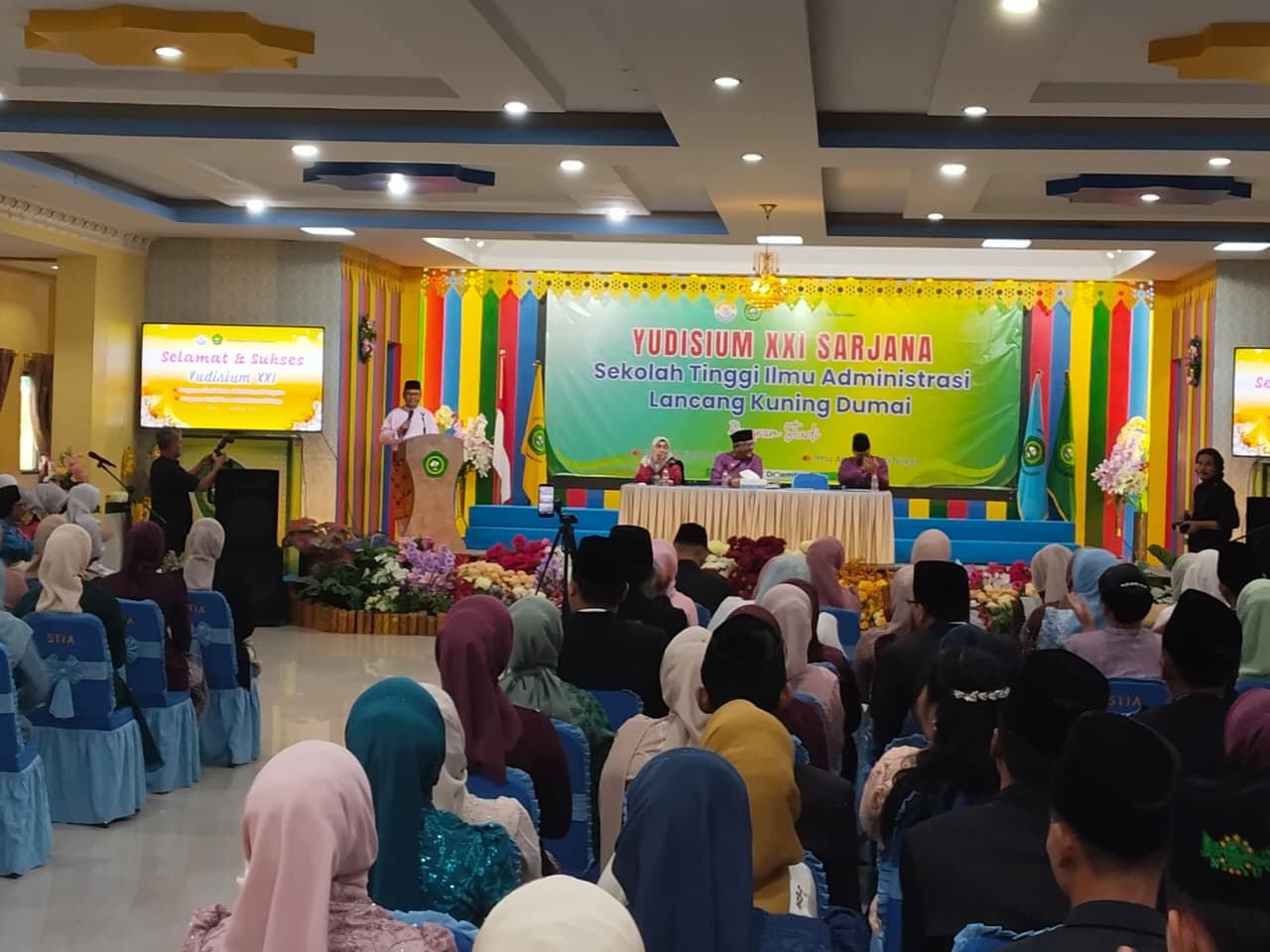 Acara yudisium dipimpin langsung oleh Ketua STIA Lancang Kuning Dumai, Bapak Latip, S.Sos., M.Si., Ph.D., serta dihadiri oleh jajaran pimpinan institusi, para ketua program studi, dosen, dan tenaga kependidikan. Prosesi berlangsung tertib dan penuh khidmat, diawali dengan pembacaan Surat Keputusan Yudisium, penetapan kelulusan mahasiswa, serta penandatanganan berita acara yudisium.