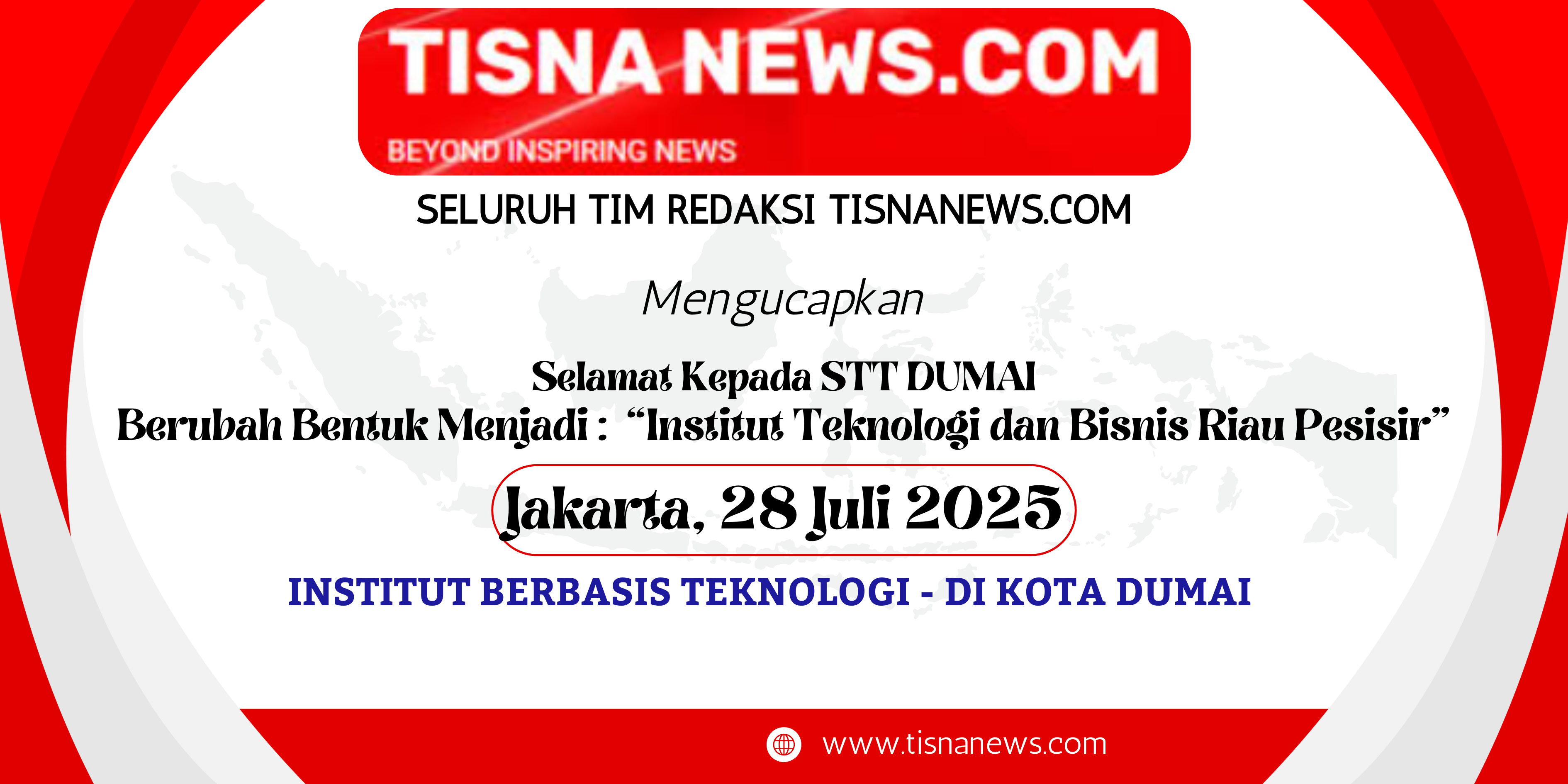 Dumai, 30 Juli 2025 - Seluruh Tim Redaksi TISNA NEWS.COM mengucapkan selamat dan sukses kepada STT Dumai atas keberhasilannya bertransformasi menjadi "Institut Teknologi dan Bisnis Riau Pesisir". Semoga semakin maju, unggul, dan memberi kontribusi besar bagi kemajuan pendidikan di Indonesia, khususnya di wilayah pesisir Provinsi Riau.