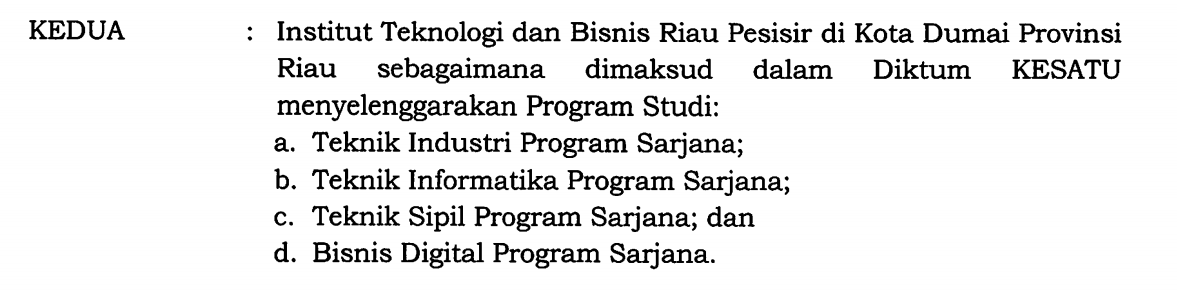 Berdasarkan SK Menteri, Institut Teknologi dan Bisnis Riau Pesisir akan menyelenggarakan empat program studi jenjang sarjana (S1), yaitu: