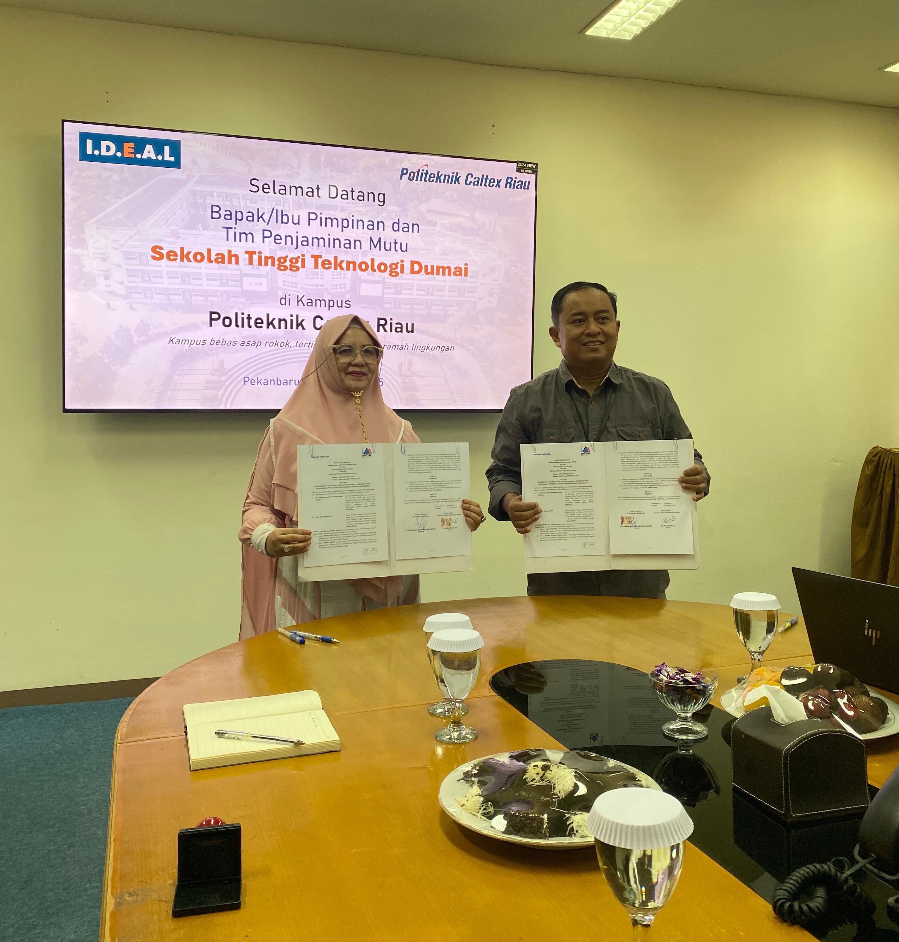 Sementara itu, pihak Politeknik Caltex Riau menyambut hangat kedatangan rombongan STT Dumai. Direktur PCR, Dr. Dadang Syarif Sihabudin Sahid, S.Si., M.Sc., beserta Kepala Badan Penjaminan dan Pengembangan Pendidikan Mutu (BP3M) PCR, Maksum Ro'is Adin Saf, S.Kom., M.Eng., turut hadir dalam diskusi yang berlangsung produktif.