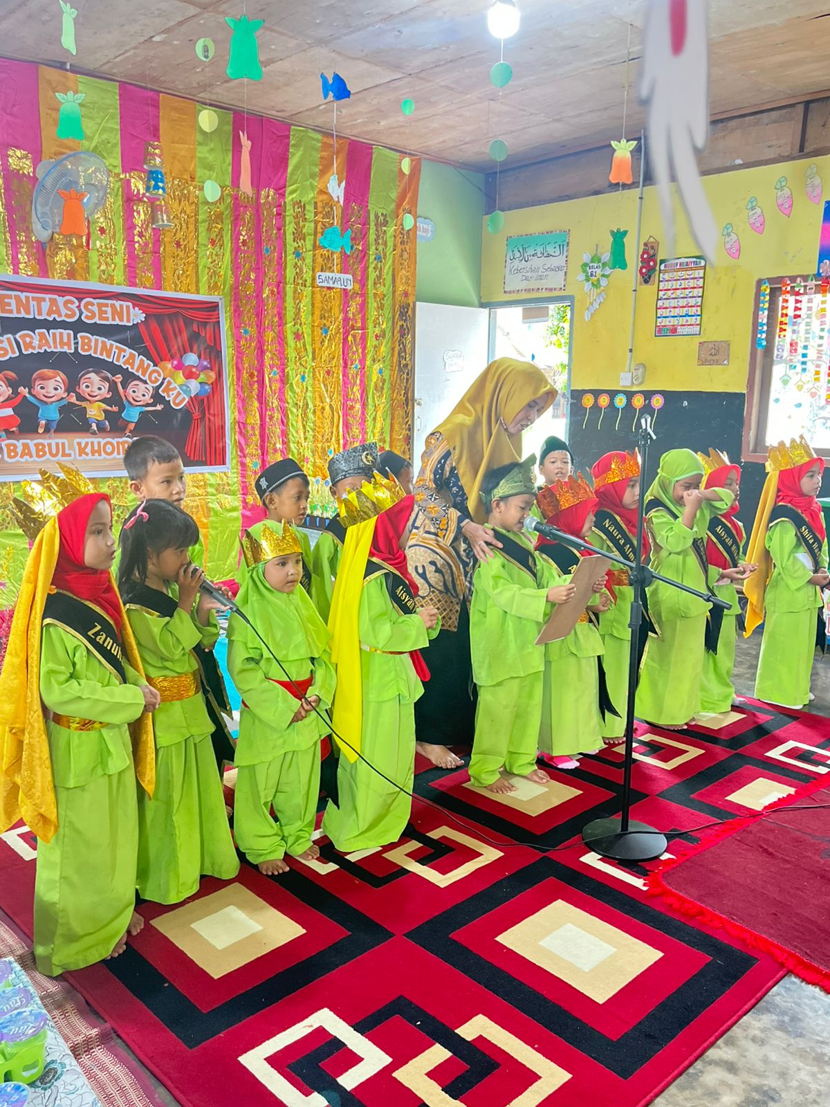 Dalam kegiatan tersebut, TK Islam Babul Khoirah menampilkan berbagai pertunjukan seni anak, mulai dari tari, nyanyian, hingga penampilan tematik yang mencerminkan proses belajar yang menyenangkan. Pentas seni ini tidak hanya menjadi sarana mengekspresikan kreativitas anak, tetapi juga media pembelajaran keberanian, percaya diri, dan kerja sama.